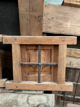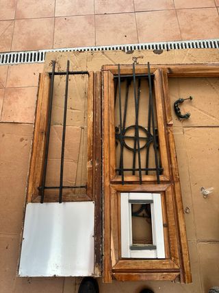 De madera antigua con reja de forja y contraventanas. Muy antigua, en perfecto estado. Apata para decoración o dividir estancias. Precio negociable. Ancho 75cm, alto 1,20.