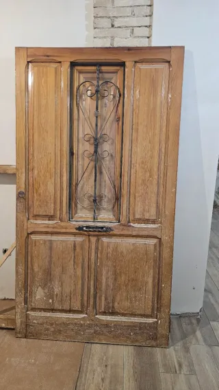 Puertas antiguas madera maciza con reja