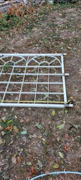 Conjunto de rejas de hierro forjado con un diseño clásico y elegante. Perfectas para añadir seguridad y un toque decorativo a tu hogar. - Medidas: 2,18 metros de ancho y 1,25 metros de alto. - Material: Hierro forjado. - Diseño: Detallado con ornamentos en la parte inferior. Una manita de pintura y como nueva
