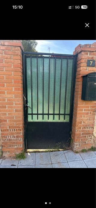 Se vende reja maciza originaria de un chalet adosado de la puerta de salida al patio, tiene cerradura y la pintura está en perfecto estado, pintada al horno.