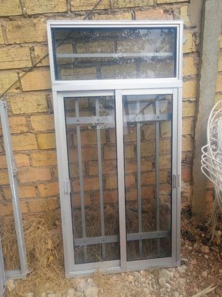 Ventana y marco de aluminio con reja de seguridad integrada. Perfecta para añadir protección y estilo a tu hogar. Urge venta, escucho ofertas - Marco de aluminio resistente. - Doble hoja corrediza. - Reja de seguridad metálica. - Cristal superior fijo - 79cm x 157cm