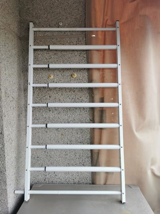 Reja de aluminio para balcón, ideal para proteger a niños o mascotas. Está en buen estado. - Fabricada en aluminio resistente. - Diseño sencillo y funcional. - Medidas aproximadas: 100x80 cm (a confirmar).