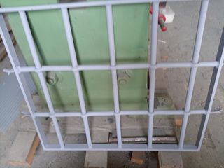 reja de hierro macizo con solapas para atornillar y barrotes con decorado , soll tiene la pintura eegular como se ve en la foto , pero no esta nada oxidada , tengo dos 139x117 y 118,5 x117, precio por unid