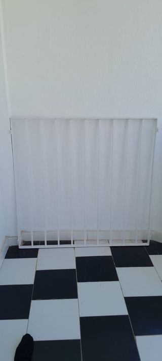 Preciosa reja blanca para puerta, ideal para proteger tu hogar. Está en buen estado, aunque tiene algunas marcas de pintura. - Fabricada en metal. - Color blanco. - Diseño de barras verticales.