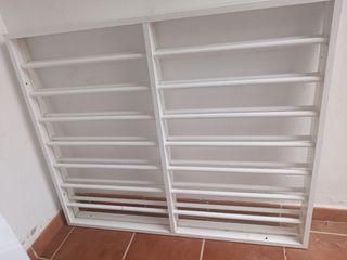 Rejas de aluminio, color blanco. Se encuentran en muy buen estado. - Medidas: - 1 298 ancho x142 alto =50 EU, - 1 140x141=35 EU, 1 138x105=30 EU, 1-119x105=30 EU, 1-119x90=30 EU, 1-75x155=25 EU (falta una esquina, se fabricó así). TODAS 200 EU o por unidad. SÓLO MÁLAGA. - Material: Aluminio - Color: Blanco