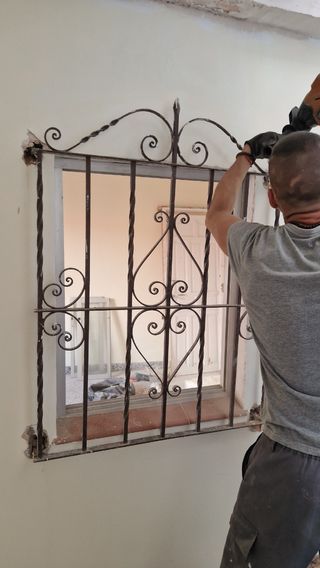 Preciosa reja de hierro forjado, Tiene forma de medio punto y un diseño elegante. 60x1,08 - Estructura de hierro resistente. - Diseño clásico con detalles decorativos. - Perfecta para añadir un toque rústico a tu espacio tengo la ventana tambien de aluminio con el mismo angulo precio aparte