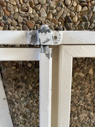 Reja de ventana blanca, ideal para mejorar la seguridad de tu hogar. Es una pieza de metal, de color blanco, que se encuentra en buen estado. - Fabricada en metal. - Color blanco. - Diseño sencillo y elegante.