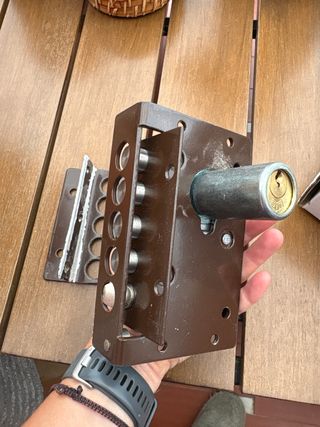 Se vende cerradura de seguridad con su placa y 5 llaves. - Cerradura de metal. - Placa de montaje. - 5 llaves incluidas.