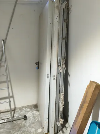 Se venden 2 puertas para trastero con marcos y cerradura. 85cm x 204cm - Color blanco. - Incluye manilla y cerradura.