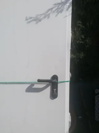 Puerta completa para trastero. - Color blanco. - Incluye manilla negra. Se encuentra en un pueblo de la sierra.