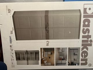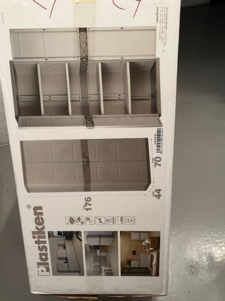 Trastero de plástico de la marca Plastiken con dos puertas. - Medidas: 176 cm (alto) x 70 cm (ancho) x 44 cm (fondo). - Color: beige y gris. - Material: plástico resistente.