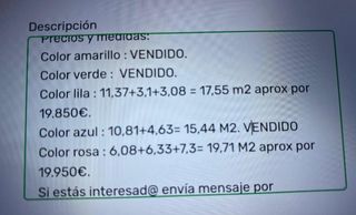 Están en venta los 3 rosa y los 3 lilas. Los otros colores están vendidos. Cada color es una finca indivisible. Se comprarian tres trasteros por 16500.
