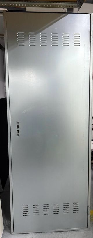 Puerta metálica para trastero, con un diseño moderno y funcional. - Acabado en color gris plateado. - Incorpora rejillas de ventilación en la parte superior e inferior. - Negociables