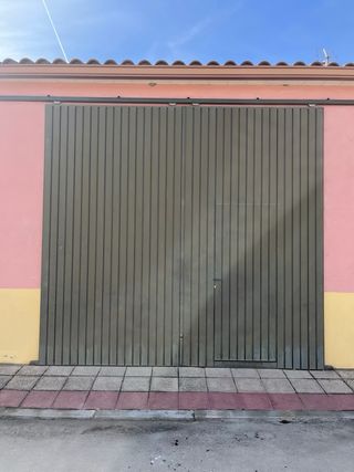 Puerta para garaje o nave compuesta por dos hojas. Es bastante robusta, está en buen estado a falta de pintura - Fabricada en metal resistente. - Dos hojas correderas. - Color gris verdoso desgastado. - Ideal para garaje o nave. Medidas 3,89metros de ancho 3.20 de altura