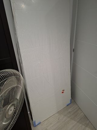 Tablero acabado planco en pvc para puerta acorazada. Está nuevo en embalaje.