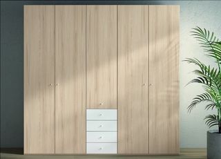Armario de 5 puertas y 4 cajones, excelente calidad y diseño. Diferentes opciones de color a elegir. Ancho 230, alto 220, fondo 54,6. Bisagras autocierre, cantos soft forming pvc. Opción en altura 240 y en ancho de 250. Envío y montaje opcional 100€ (hasta 15 km).