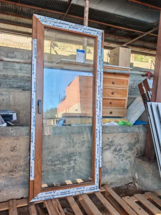 Puerta galería/balconera de PVC marca CORTIZO imitación madera, 1 hoja de apertura oscilobatiente y cristal doble climalit guardian select (4 mm + Cámara de 16mm + 4 mm) Nueva a estrenar Medidas: 87 x 200 x 7 SOLO RESERVO CON SEÑAL DISPONIBLES MÁS VENTANA, BALCONERA, VENTANAL, PUERTA, FIJO, PVC, RPT... EN MI PERFIL 🚚 TRANSPORTE NO INCLUIDO EN EL PRECIO