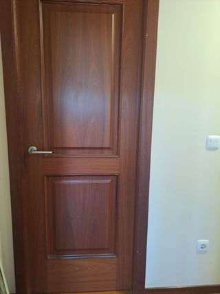 Se venden puertas de vivienda en Sapelly. 5ud de 72,5cm, 2ud de 62,5cm y una doble. - Acabado en Sapelly. - Diseño clásico con paneles. Tienen unos 15 años, no están perfectas pero en buen estado. Se venden en conjunto con marcos y jambas (alguna para cambiar).