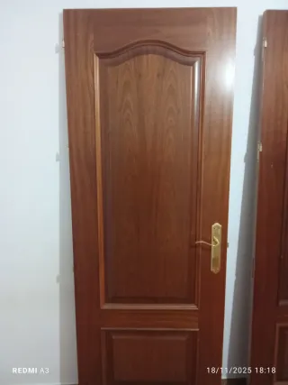 Conjunto de cinco puertas de madera maciza de Sapelly. Perfectas para renovar tu hogar con un toque de elegancia y calidez. - Material: Madera maciza de Sapelly. - Cantidad: 5 unidades. Puertas sueltas 40€, todas 150€