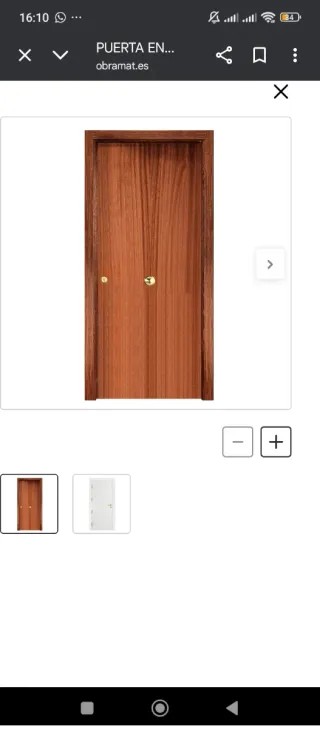 Se vende lote 7 puertas interiores buen estado, con marcos y guarniciones numerados. No se venden por separado. 🔹 Material: MDF macizo chapado en sapelly 🔹 Marcos: Madera maciza 🔹 Incluye: Manilla, bisagras y tornillos 🔹 Guarnición: Interior + exterior 📐 Detalles: 1. Puerta c/cristal–72cm, apertura izq., marco 9cm 2. Puerta c/cristal–82cm, apertura izq, marco 9cm 3. Puerta doble c/cristal–73cm cada hoja, apertura izq.y drcha, marco 9cm 4. Puerta ciega–72cm, apertura drcha, 5. Puerta ciega–72cm, apertura drcha, marco 12cm 6. Puerta ciega–72cm, apertura izq, marco 9 cm 7. Puerta ciega–72cm, ap.drcha.marco 9cm