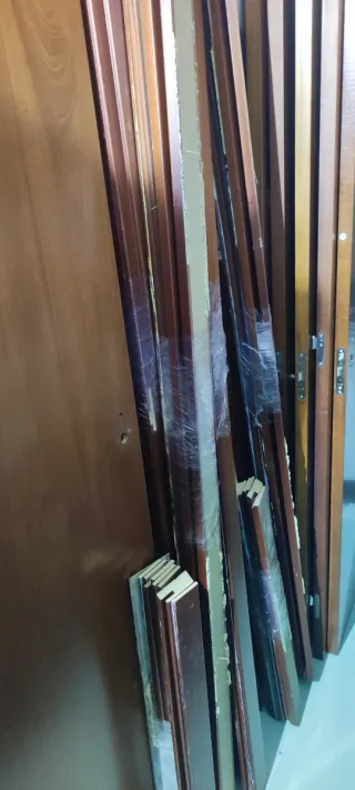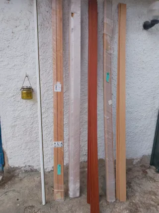 Lote de jambas y tapetas para puertas correderas. Juego de 6 tapetas en L en Roble 30€ Jambas de 11 en Roble 50 € Juego 6 tapetas lisas en Roble 25€ 3 tapetas lisas de 7 en roble 15 € 4 tapetas lisas de 9 en sapelly 15 € - Variedad de perfiles y acabados. - Ideales para proyectos de carpintería.