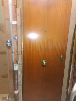 Puerta blindada usada barata en sapelly 2caras lisas herrajes dorados con 1 llave Medidas de hoja 203 x 82 apertura a mano izdas con contracerco y molduras. Está tal cual se ve en las fotos con algún Toke. 90 € Está en Villaverde alto Madrid