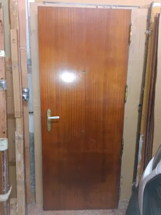Puerta blindada de interior con acabado en madera de Sapelly x ambas caras. ( Nueva ) sin estrenar , con cerradura , 8 llaves , pomo para su apertura ( Todo Nuevo en su caja ) y 3 tapetas para parte exterior. Forra de puertacen blanco para la parte interior incluido en caso de que desee forrarse. ( ULTIMA OFERTA ) ( NO ACEPTO REGATEOS ) ( RECOGIDA EN RUBÍ ) - Medidas: 82,5 cm de ancho. - Modelo: IZO. - Marco: RE 90X30 CR. - Herrajes: 38S/RD MCMD1P. - Incluye kit de herrajes que se suministra por separado.