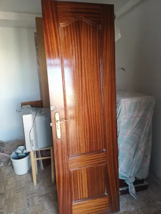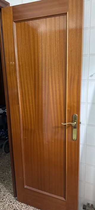 Puerta interior de madera maciza de sapelly. Un clásico que aporta calidez y elegancia a cualquier estancia. - Material: Madera maciza de sapelly. - Tipo: Puerta interior. - Se vende con manillas. 75€ cada puerta. Dos puertas son de apertura a derecha y tres puertas son de apertura a izquierda. Medidas: 72 cm de ancho y 2,02 cm de alto Precio negociable.