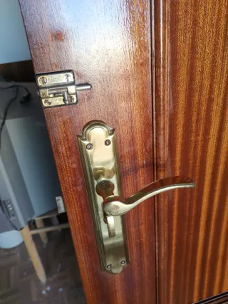 Puertas de interior con acabado en Sapelly. - Diseño clásico provenzal. - Color marrón cálido. - Incluye manilla dorada. - No incluye marco. 30 euros la unidad. Las hay de mano izquierda y de mano derecha. Hay 9 unidades. Todas por 220€. Todas de 72.5. A recoger en Alcázar de San Juan.