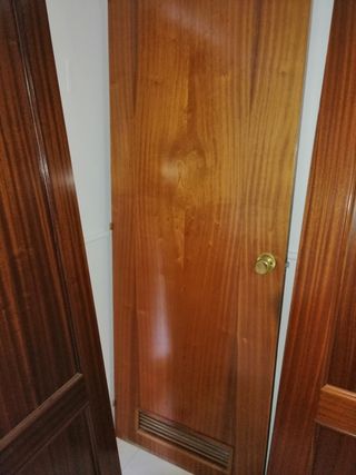 Se vende lote de 7 puertas en buen estado de madera maciza de color Sapelly-Caoba de varios tipos: - 1 puerta completa de 72 abre a derechas - 1 puerta con cristalera de 72 abre a derechas - 3 puertas completas con rejillas inferiores de 72 abren a derechas - 1 puerta completa de 60 abre a derechas - 1 puerta completa mitad color Sapelly mitad color blanca de 60 abre a izquierdas El material de las puertas es de madera maciza de color tipo Caoba-Sapelly salvo una hoja blanca.