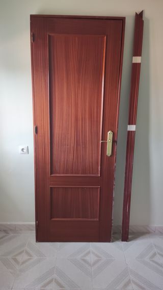Preciosa puerta de madera color sapeli, NUEVA. Ancho 72 cm, alto 2,05 - Color: Sapelly. - Material: Madera. - Se venden juntas. - En buen estado.