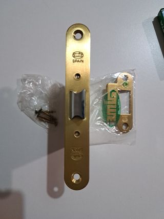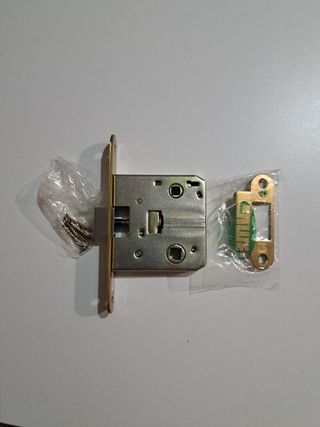 Amig - Picaporte Unificado para Puertas de Madera - Cerradura para Puerta Interior - Cierre de Embutir de Acero Latonado - Entrada 50 mm - Acabado: Mate