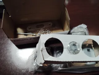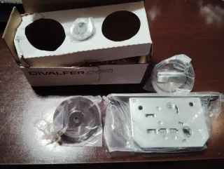 Cerradura de puerta de baño de la marca Divalfer. - Mecanismo de cerradura. - Manilla. - Componentes metálicos.