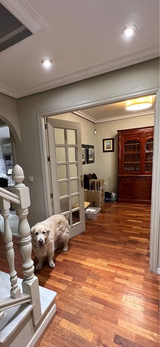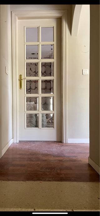 Se vende 1 Puerta de madera con paneles de vidrio por reforma. Se utilizó en cocina, hay dos más disponibles que se utilizaron en el salon. Medidas: 72,5 x 2,05 Disponibles para recoger hasta FINALES DE FEBRERO POR REFORMA - Diseño clásico con múltiples cristales. - Acabado en color claro.