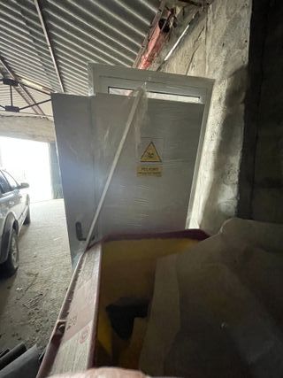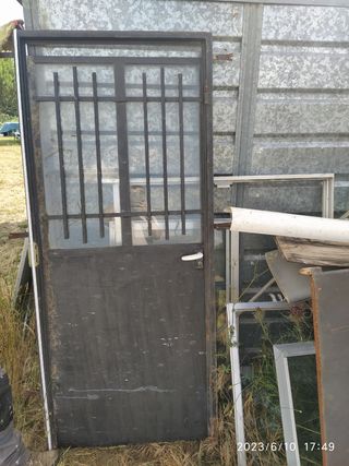 Vendo puerta de hierro fuerte con cerradura medidas 76cmx86cm ideal para cobertizo caseta de pozo etc..