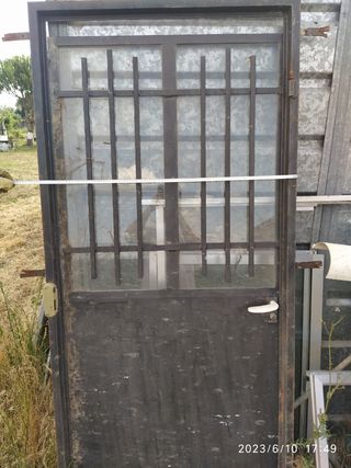 La puerta de doble hoja(60 cm cada una) y 180cm de alto,está en perfecto estado, válida para patio,corral,jardin,campo,etc