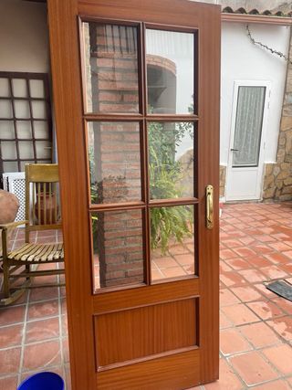 se vende puerta de madera con cristal sus medidas son de 0,8 x 2,10m de alto. Preguntar sin compromiso.