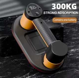 Ventosa eléctrica de vacío con pantalla digital y doble motor. - Fuerza de adsorción: 300 kg. - Potente motor dual. - Batería de litio. - Ideal para manipular materiales como azulejos, vidrio, mármol y metal.