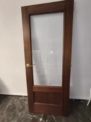 Puerta de interior de madera 50€ cristalera 60€ - Marco de madera oscura. - Panel de cristal con divisiones. - Tirador dorado.