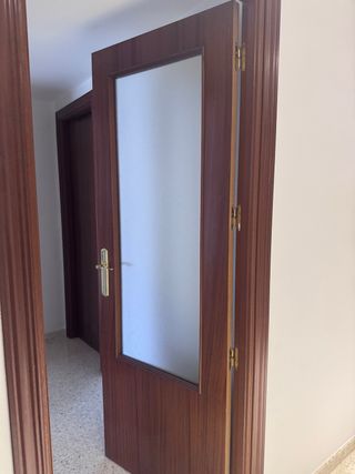 Puerta de madera , dos de ellas con cristal. Las tres son apertura derecha. 1 sin cristal de 82 1 con cristal de 82 1 con cristal de 72 Si te llevas las 3 , solo 100€