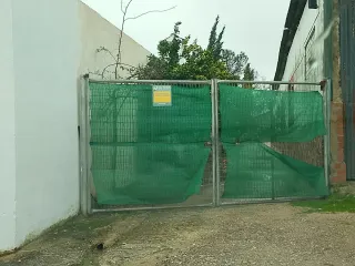 Puerta exterior de metal, ideal para delimitar espacios. - Estructura metálica. - Malla de protección verde.
