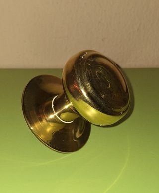 Pomo de puerta con un acabado brillante y elegante. Incluye tornillo y arandela . - Color dorado. - Diseño esférico.