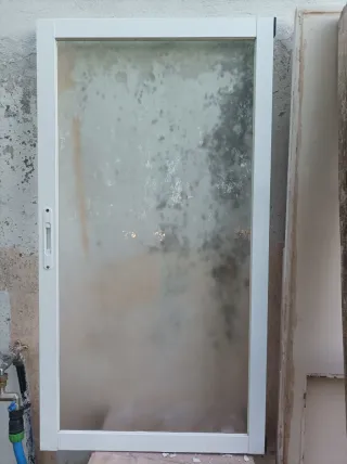 Hoja de ventana con marco de aluminio blanco y cristal translúcido. Dispongo de varias hojas. - Marco de aluminio. - Cristal con acabado texturizado. - Doble cristal. - Medidas 64 x 120 cm.