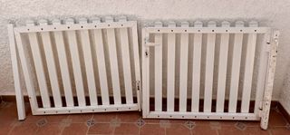Dos puertas de entrada de aluminio en color blanco. Son ideales para exteriores y cuentan con un diseño de barrotes verticales.##### Medidas : 95cm de ancho X 81cm de alto cada hoja ##### Precio a convenir #####