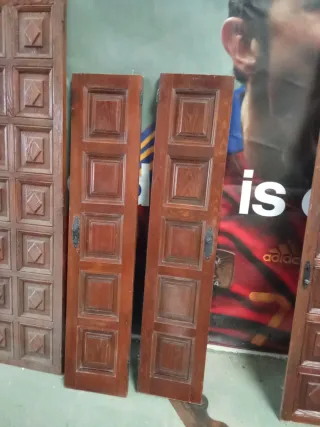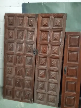 Conjunto de puertas de madera con un diseño tallado. Estilo Castellano Están en Segovia Capital Altura 1.70 ancho. Dos de 30 cts Ancho tresx de 46 cts Uno de 60 cts - Piezas de madera con detalles. - Diseño clásico y rústico.