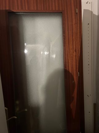Se vende 1 puerta de madera con un panel de cristal. icluye premarcos y la manilla dorada MEDIDAS : 2 metros de alto y de ancho 72 cm