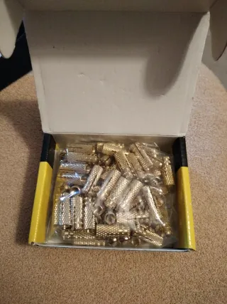 Caja de 100 tacos de latón para barras roscadas. - Modelo: NF43003 - Medida: M6 (rosca interna) - Material: Latón - Fabricado en India