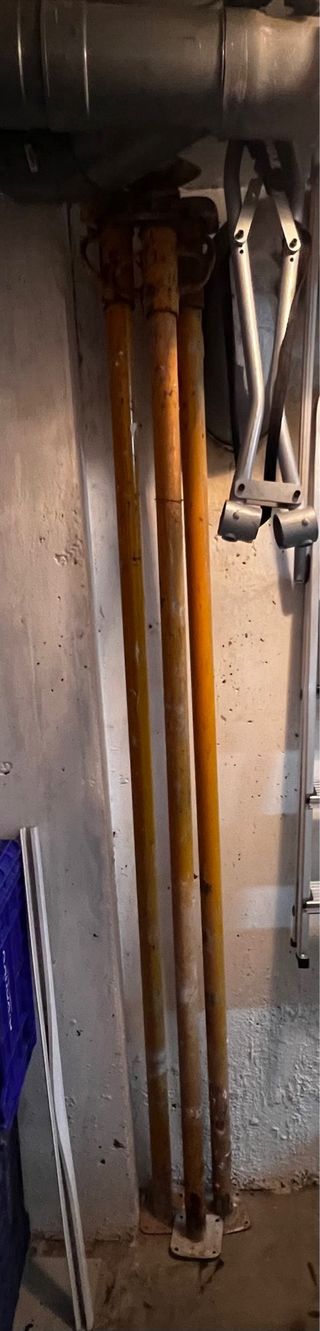 Conjunto de tres puntales de obra de color amarillo. - Material metálico resistente. - Diseño tubular.