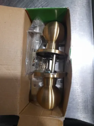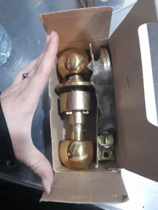 Cerradura de pomo con acabado dorado. - Diseño clásico y elegante. - Material metálico. - Ideal para puertas interiores. Precio 5e no negociable No realizamos envíos estamos ubicados en puerto de sagunto