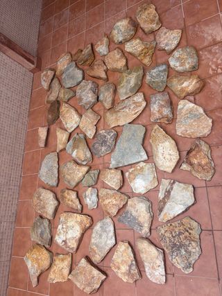 Conjunto de piedras naturales de formas irregulares y aspecto rústico. 50 piezas de distinto tamaño - Ideales para decoración de jardines, caminos o proyectos de paisajismo. - Textura y colores variados, aportando un toque natural y auténtico. - Cada piedra es única en su forma y tamaño.